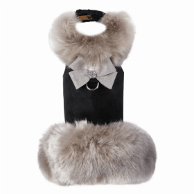 Susan Lanci Designs Platinum Glitzerati Nouveau Bow Silver Fox Faux Fur Coat (Color: Black, size: XXS)