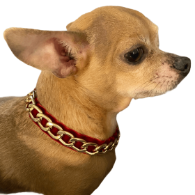 Gold Chain Velvet Collar (Color: Burgundy, size: X Large)