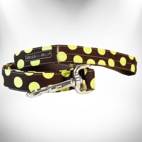 Polka Dot Dog - Tan Dots Leads (Color: Tan Dots on Turquoise, size: THIN Lead 5/8" width- 5' length)