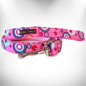 Polka Dot Dog Leads (Color: Mint Green Dot on Red, size: THIN Lead 5/8" width- 5' length)