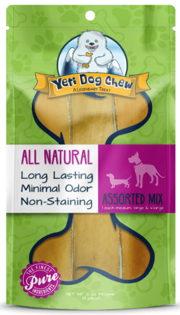 Yeti Dog Chew is an all natural and healthy dog chew made of hardened Cow/Yak milk cheese. These organic chews are not only good for dogs of all sizes and ages, the product doesn't stain, splinter, and has minimal odor. The hard and long-lasting chew is the perfect treat to keep your dog happy and occupied for a while in a safe and natural way. (1 pieces per unit) 1.3 oz