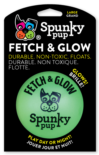 This soft, durable, non-toxic toy is great for indoor or outdoor play. Say goodbye to drool-encrusted tennis balls - Fetch & Glow by Spunky Pup is easy to clean, waterproof and even floats. So, wherever the fun takes you -- to the dog park, the beach, or just around the house -- Fetch & Glow will keep your dog running, jumping and fetching ... Day or Night!