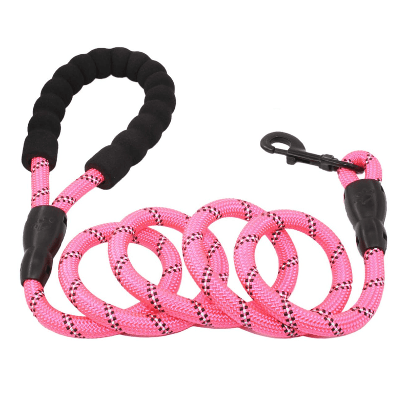Improve your walking and running experience with your best friend. Enjoy the comfort of the plush handle and heavy-duty clasp, our 5-foot high-quality rock climbing rope leash will provide you for years of use. Note: This rope leash is mainly designed for medium or large dogs as some very small dogs may find it heavy.