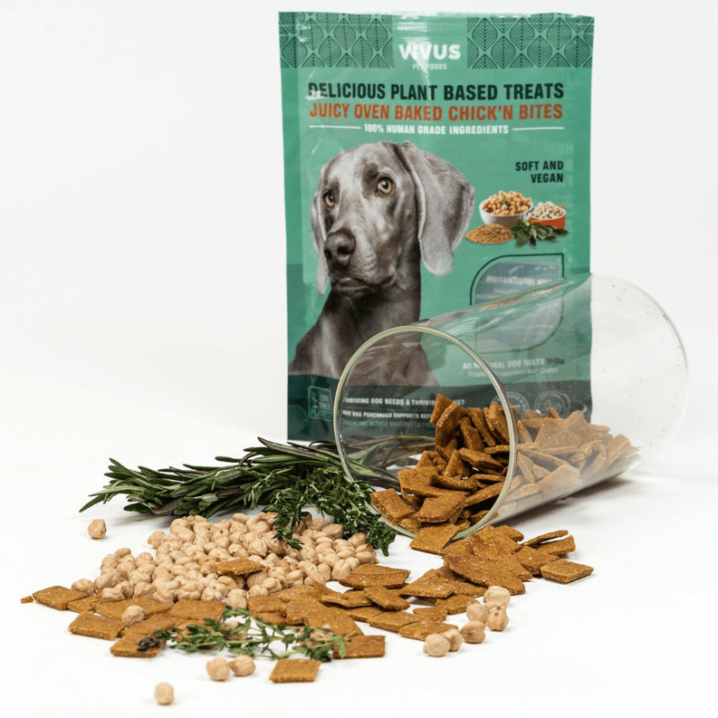 These treats feature wholesome ingredients, combined into a mouth-watering, tasty, wholesome treat. The treats are protein packed thanks to navy beans, chickpeas and nutritional yeast. Miso, a fermentation product, packs an umami punch, but, more importantly, is full of probiotics and vitamins to promote a healthy gut. Hemp oil, flaxseeds, and algae oil bring complimentary omega 3, 6 and 9 fatty acids for anti-inflammatory, skin and coat health.