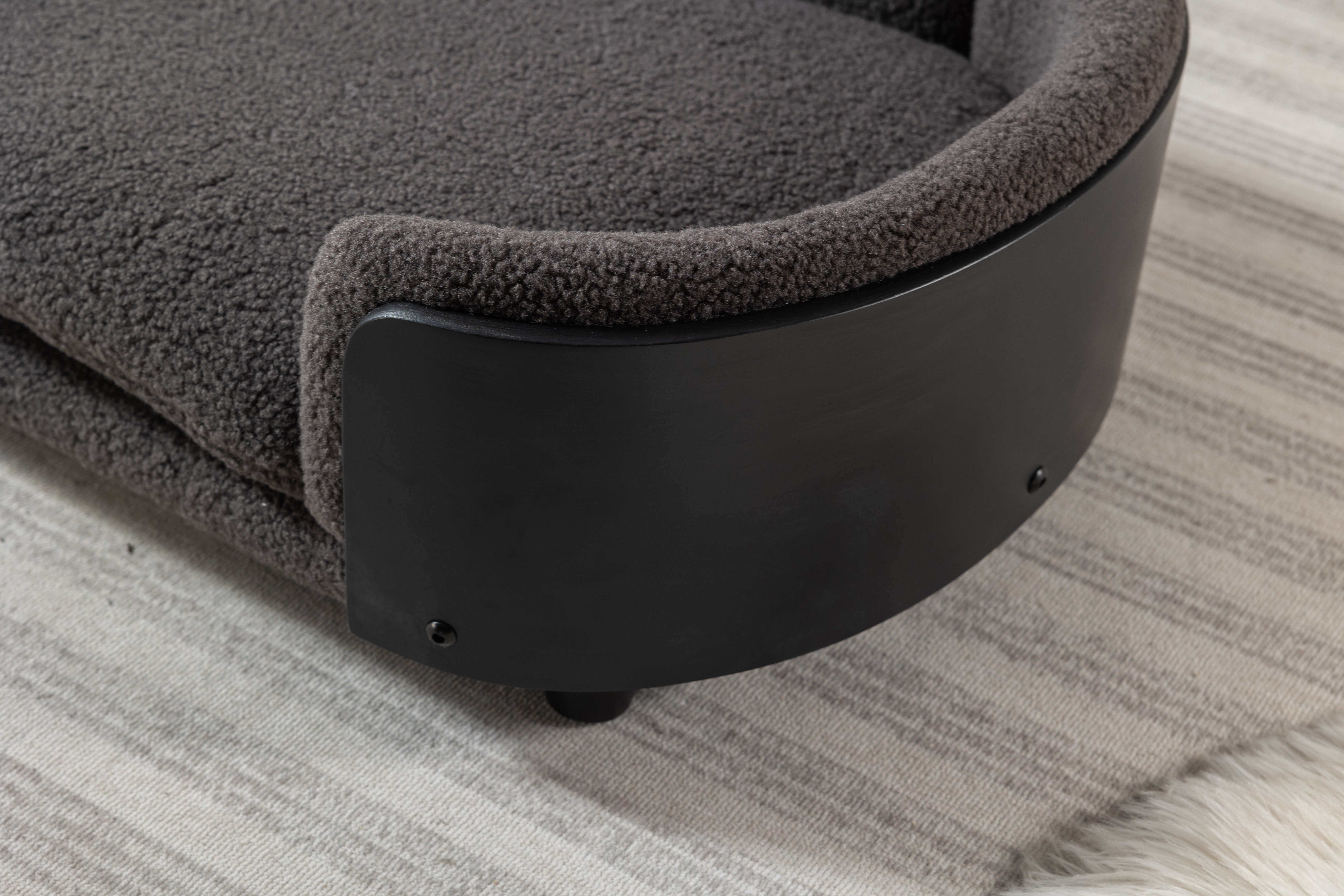 Scandinavian style Elevated Dog Bed Pet Sofa With Solid Wood legs and Black Bent Wood Back, Cashmere Cushion,Mid Size